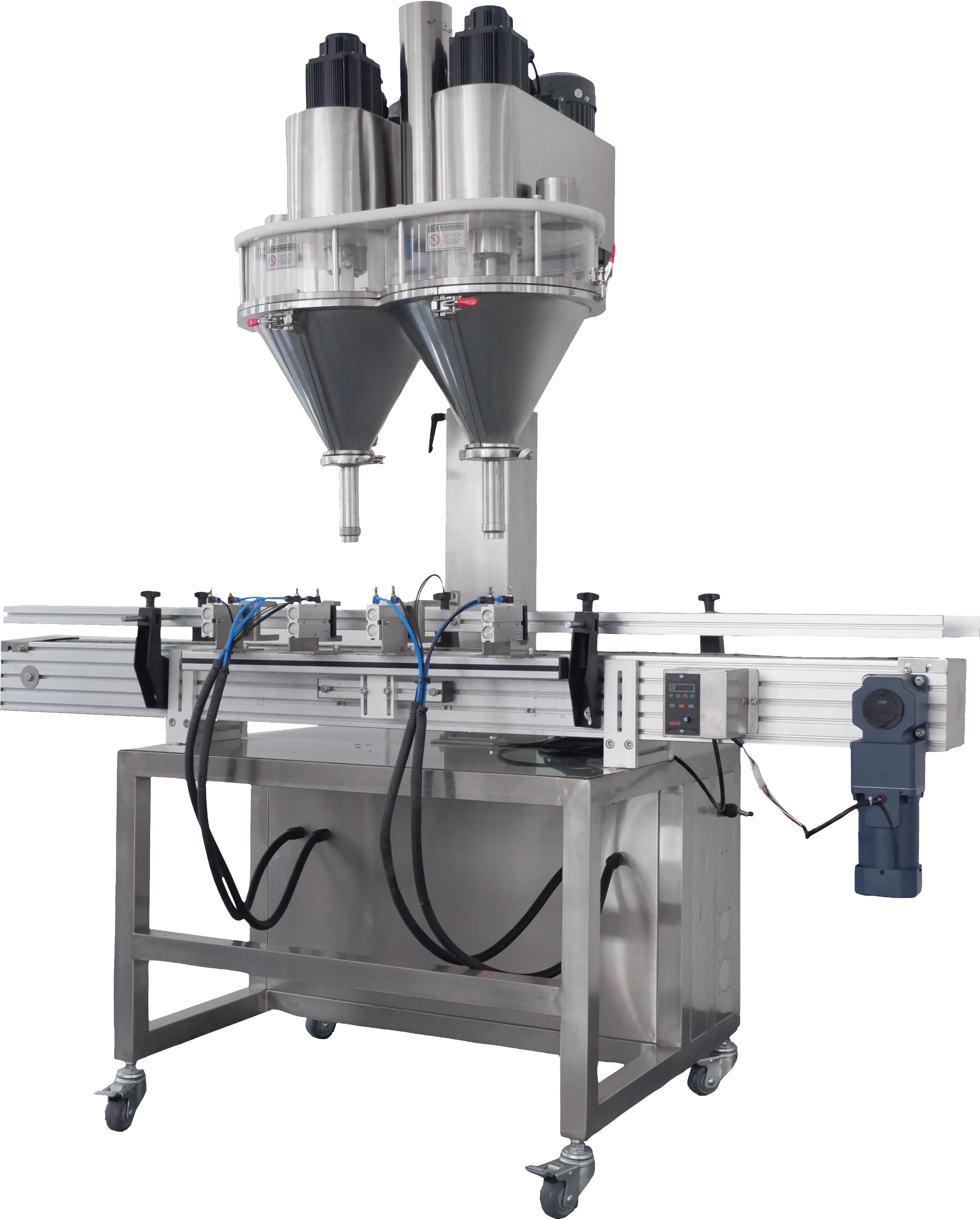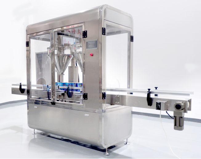 3、 灌装时,瓶子可升至螺旋下料处,减少粉尘外溢。